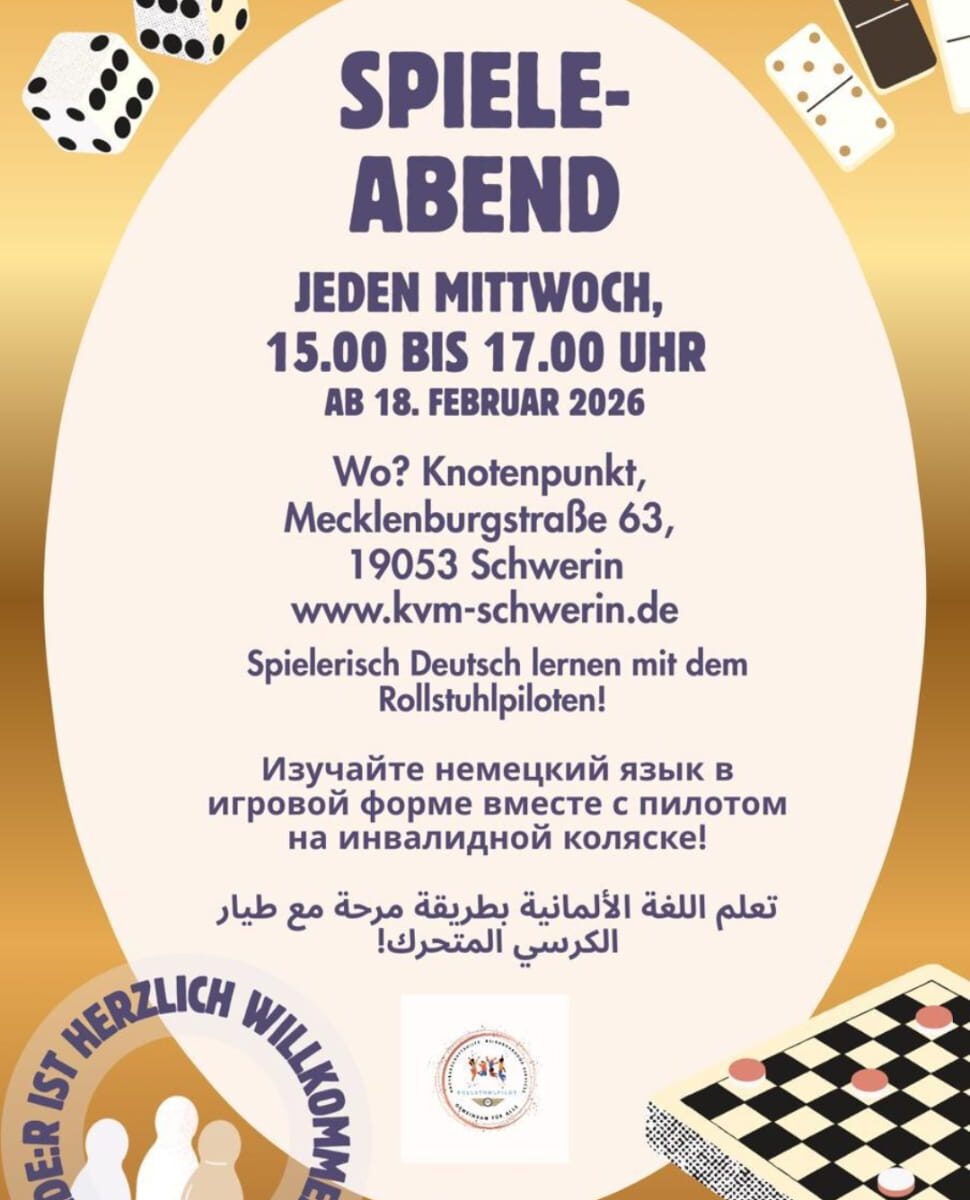 Straßendeutsch, Sprachunterricht und Tischspiele für Menschen mit migrantischen Hintergrund.